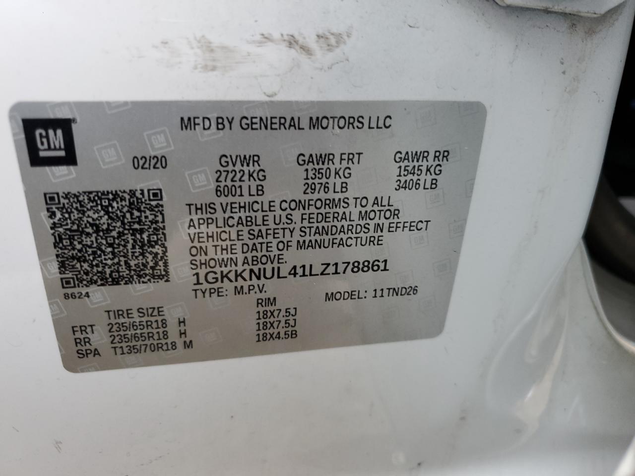 Цвет БелыйЦилиндры 4Привод Полный приводVIN 1GKKNUL41LZ178861Состояние НеизвестноПовреждение Передняя или задняя