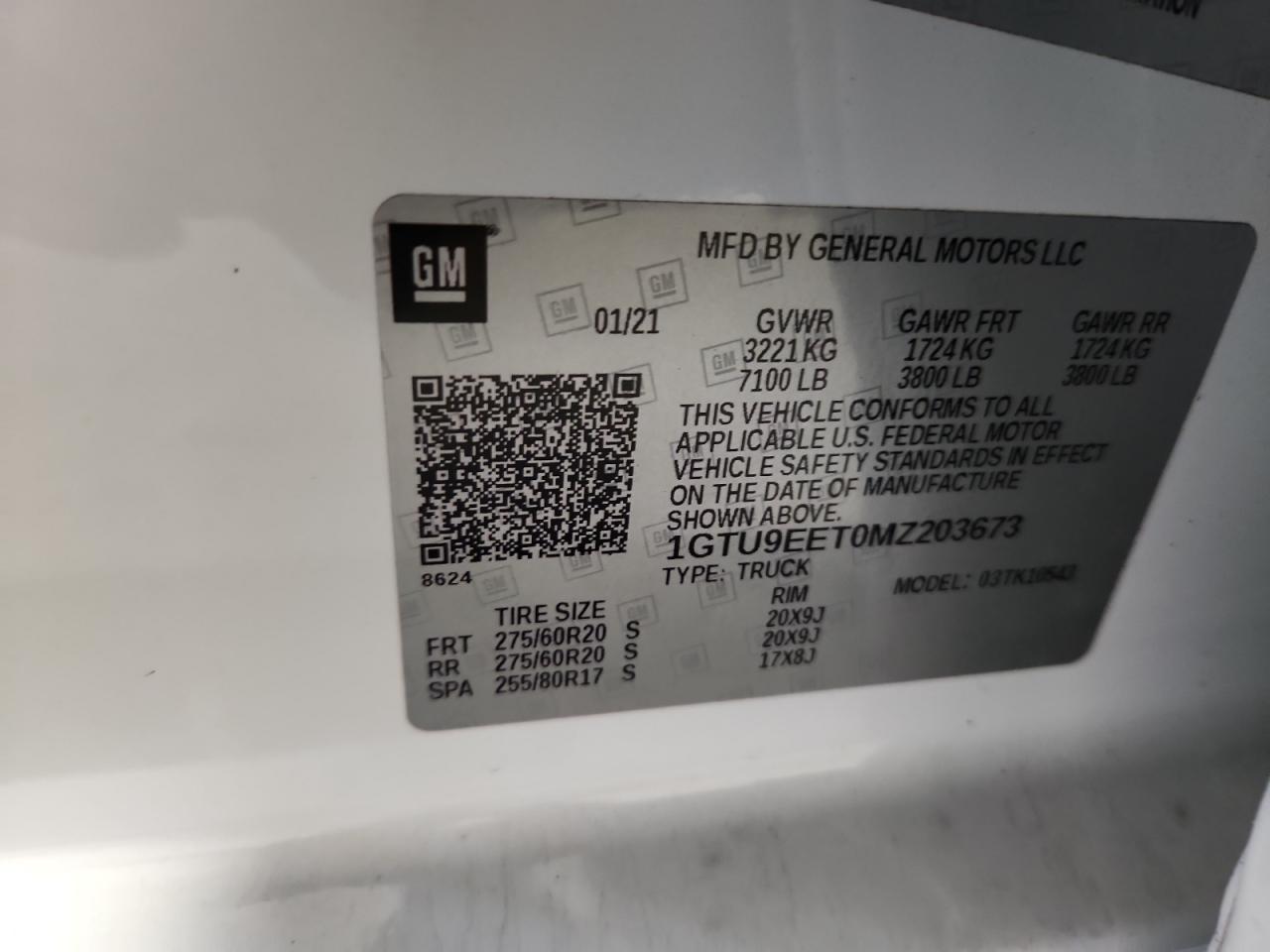 Цвет БелыйЦилиндры 6Привод 4x4 с задним приводомVIN 1GTU9EET0MZ203673Состояние ЗаводитсяПовреждение Передняя или задняя