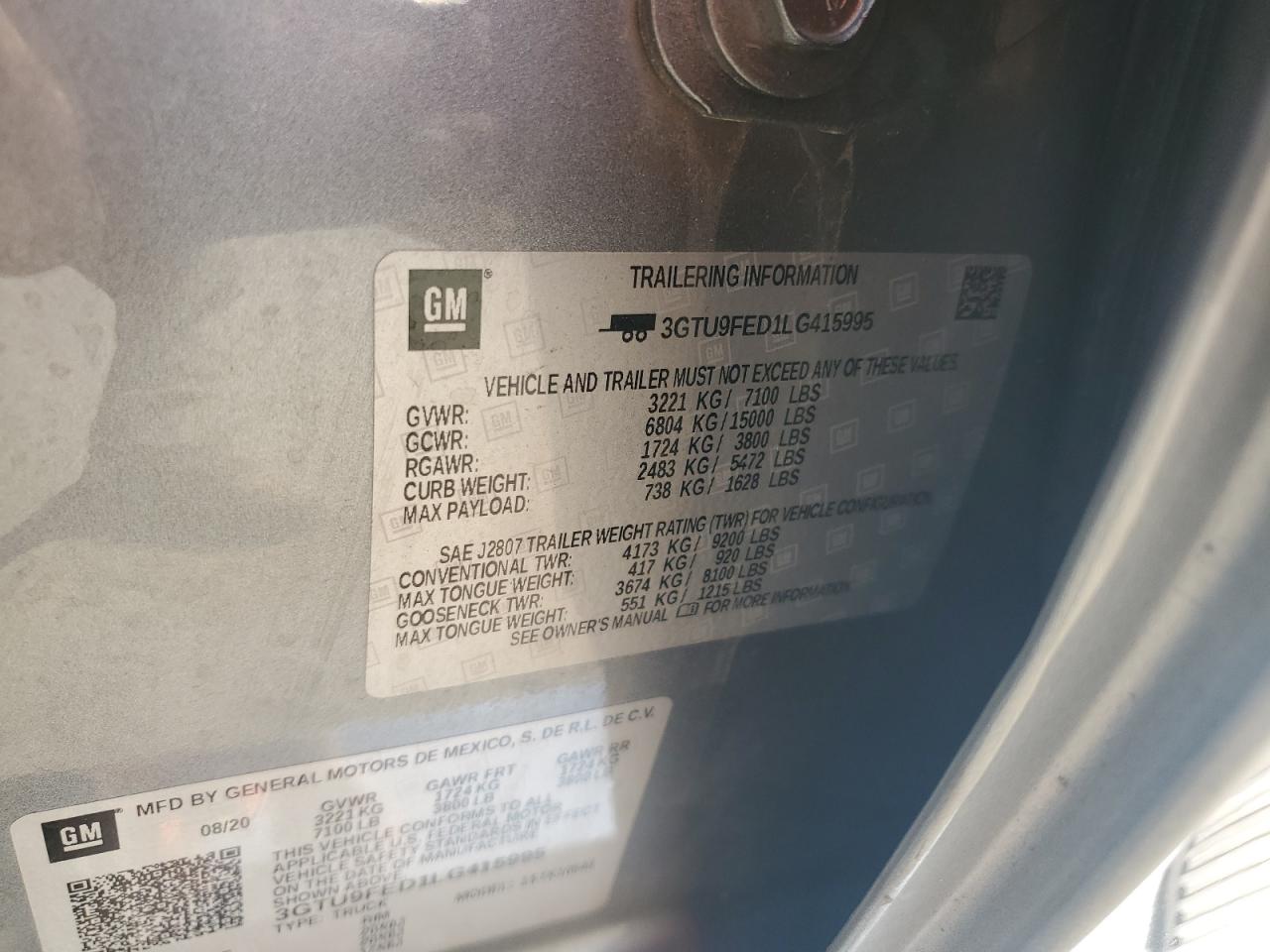 Цвет СерыйЦилиндры 8Привод 4x4 с задним приводомVIN 3GTU9FED1LG415995Состояние Заводится и едет (проверено)Повреждение Задняя