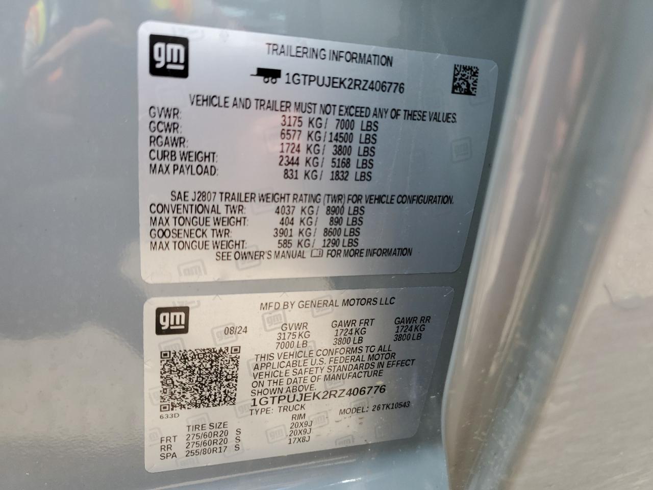 GMC SIERRA 2.7 2024 г.в., 4x4 с задним приводом (1GTPUJEK2RZ406776) из США