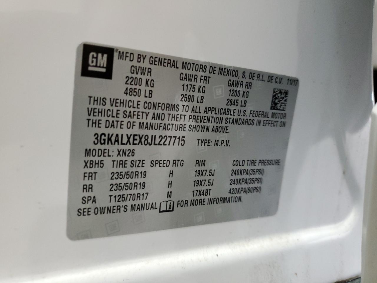 Цвет БелыйЦилиндры 4Привод Полный приводVIN 3GKALXEX8JL227715Состояние Заводится и едет (проверено)Повреждение Передняя или задняя