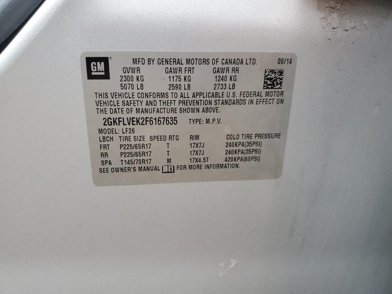GMC TERRAIN 2.4 2015 г.в., Полный привод (2GKFLVEK2F6167635) из США