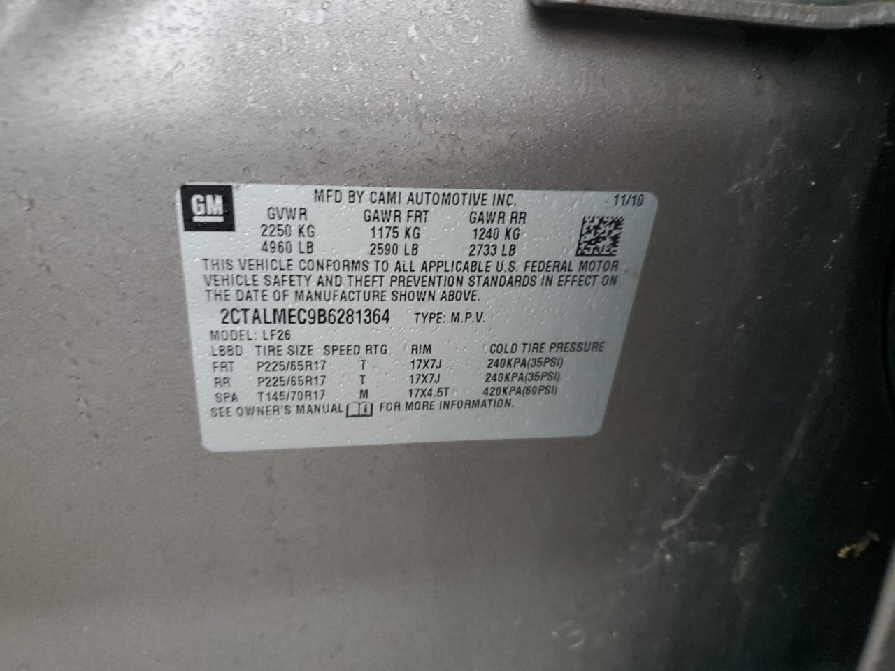 GMC TERRAIN 2.4 2011 г.в., (2CTALMEC9B6281364) из США