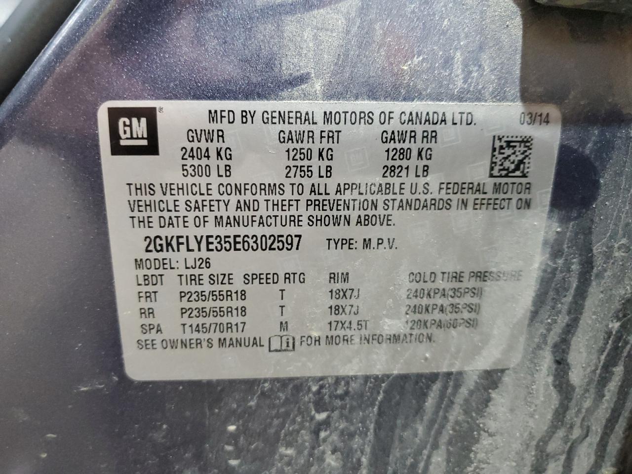 Цвет СинийЦилиндры 6Привод Полный приводVIN 2GKFLYE35E6302597Состояние Заводится и едет (проверено)Повреждение Передняя или задняя