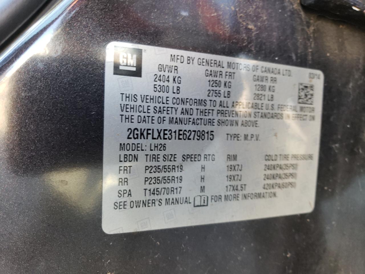 GMC TERRAIN 3.6 2014 г.в., Полный привод (2GKFLXE31E6279815) из США