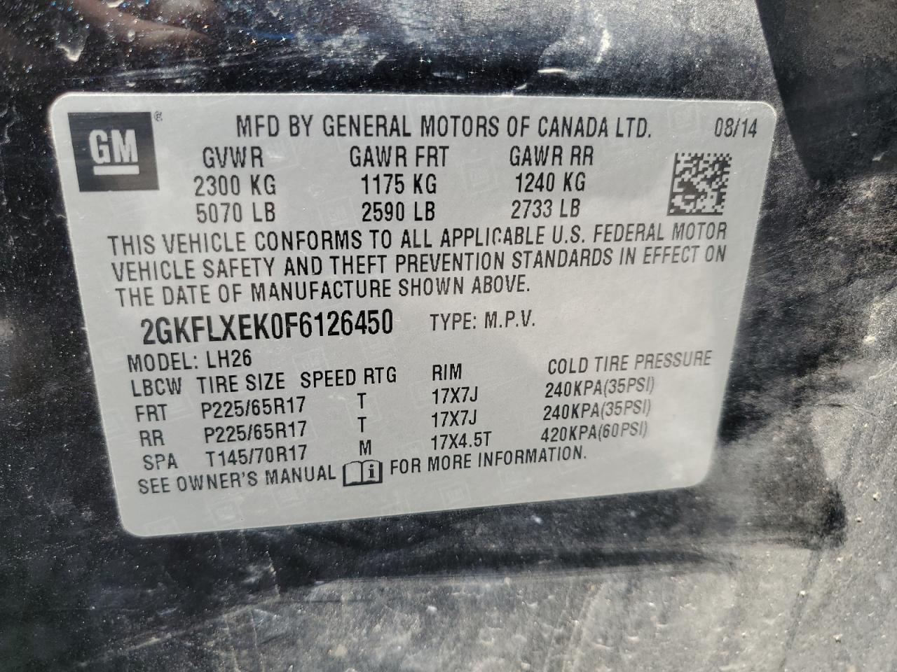 GMC TERRAIN 2.4 2015 г.в., Полный привод (2GKFLXEK0F6126450) из США