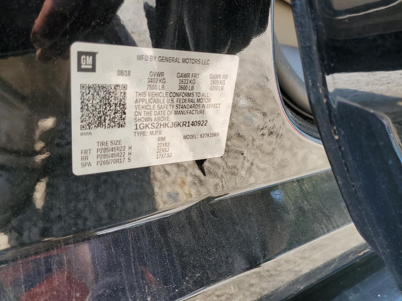 GMC YUKON 6.2 2019 г.в., 4x4 с задним приводом (1GKS2HKJ6KR140922) из США