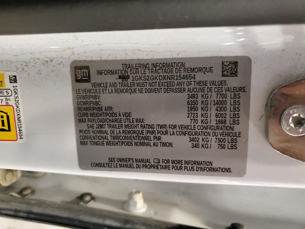 Цвет БелыйЦилиндры 8Привод 4x4 с задним приводомVIN 1GKS2GKDXNR154654Состояние НеизвестноПовреждение Передняя или задняя