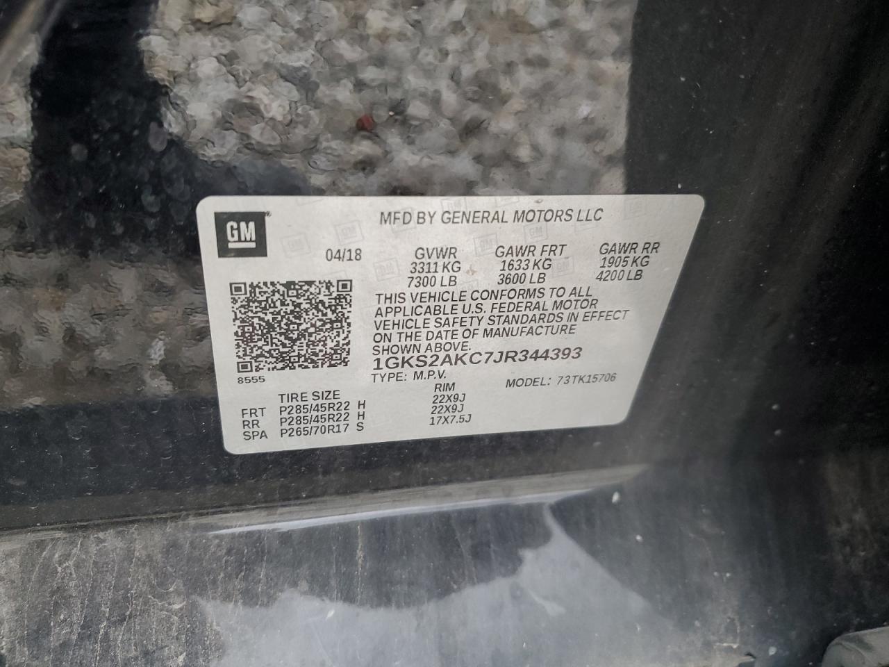 GMC YUKON 5.3 2018 г.в., 4x4 с задним приводом (1GKS2AKC7JR344393) из США