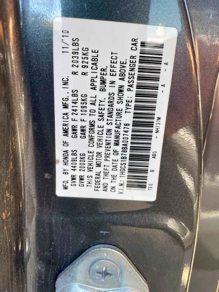 Цвет Древесный угольЦилиндры 4VIN 1HGCS1B78BA007476Состояние НеизвестноПовреждение По бокамДата аукциона 2025-11-03