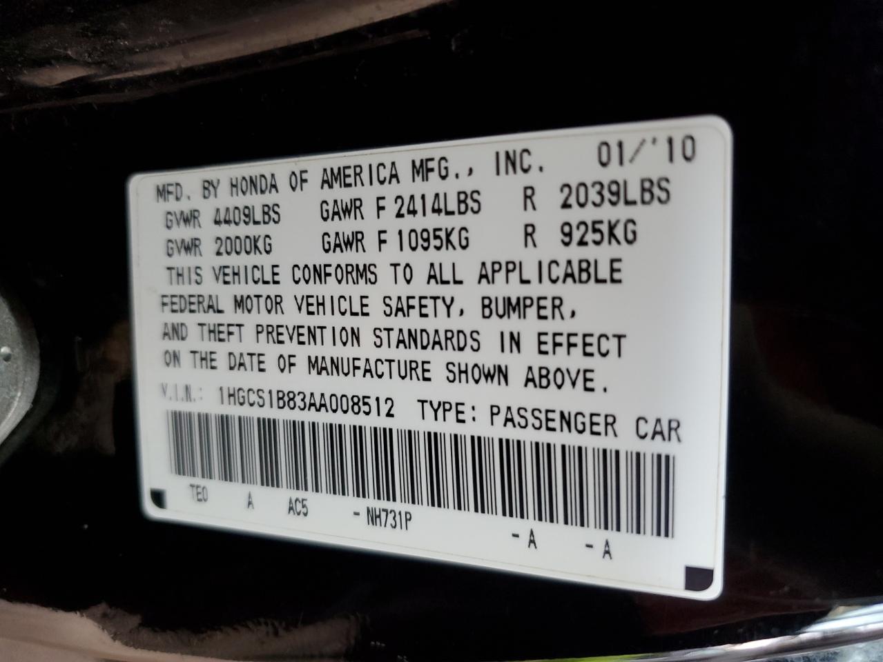 HONDA ACCORD 2.4 2010 г.в., (1HGCS1B83AA008512) из США