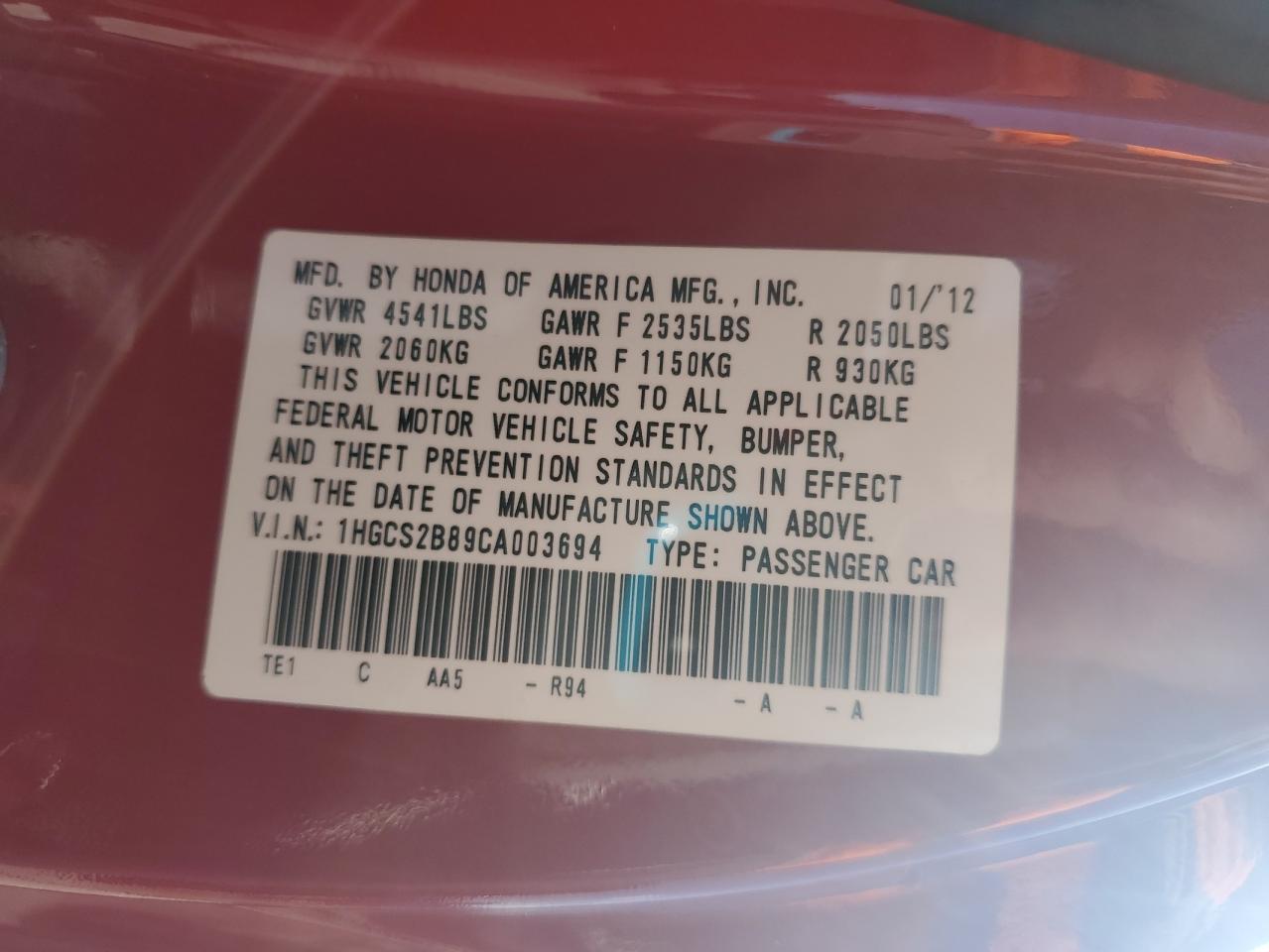 Цвет КрасныйЦилиндры 6VIN 1HGCS2B89CA003694Состояние Заводится и едет (проверено)Повреждение Передняя или задняя