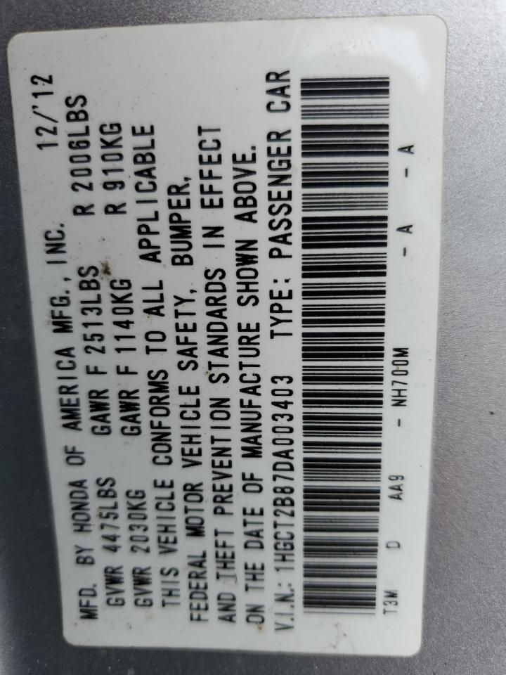 Цвет СеребряныйЦилиндры 6VIN 1HGCT2B87DA003403Состояние Заводится и едет (проверено)Повреждение Передняя или задняя
