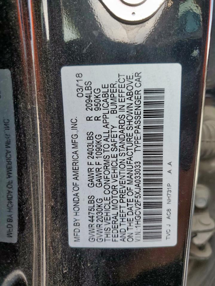 HONDA ACCORD 2.0 2018 г.в., (1HGCV2F5XJA033033) из США