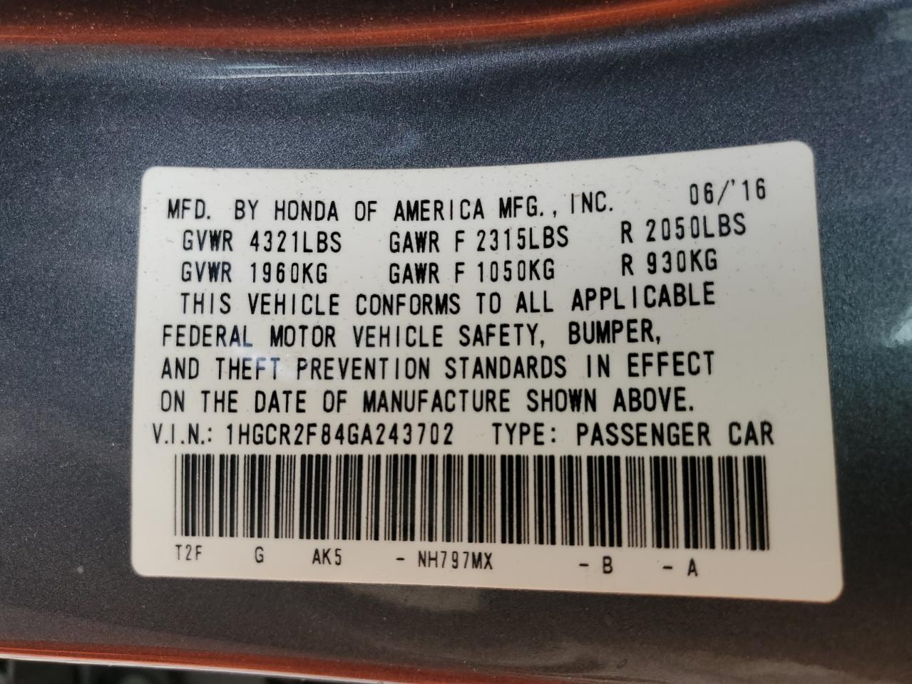 Цвет СерыйЦилиндры 4VIN 1HGCR2F84GA243702Состояние Заводится и едет (проверено)Повреждение Задняя