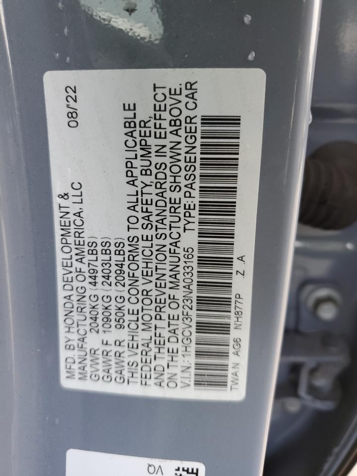 HONDA ACCORD 2.0 2022 г.в., (1HGCV3F23NA033165) из США