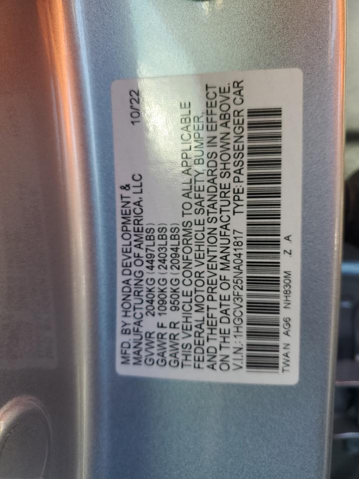 HONDA ACCORD 2.0 2022 г.в., (1HGCV3F25NA041817) из США