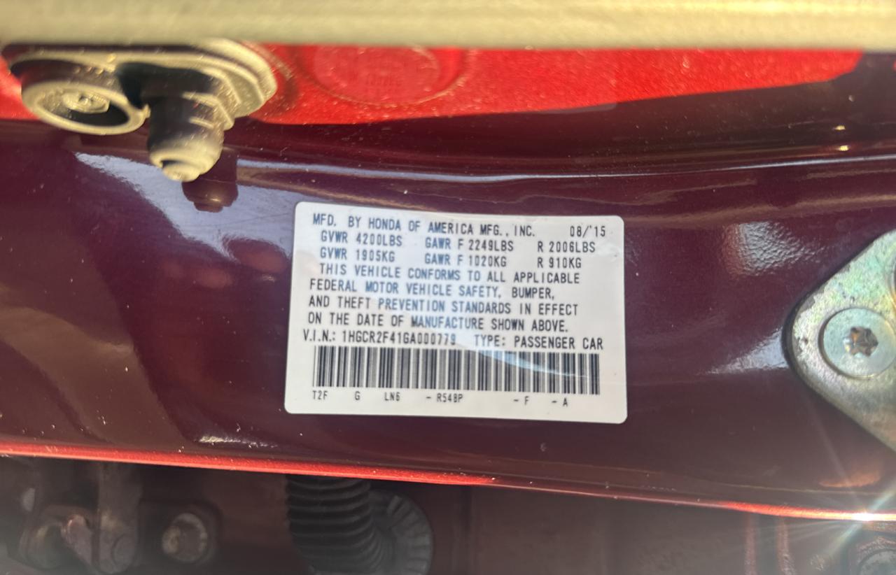 HONDA ACCORD 2.4 2016 г.в., (1HGCR2F41GA000779) из США