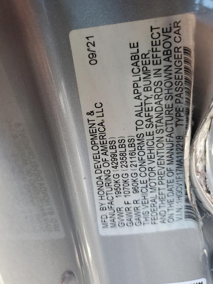 HONDA ACCORD 1.5 2021 г.в., (1HGCV1F17MA112218) из США