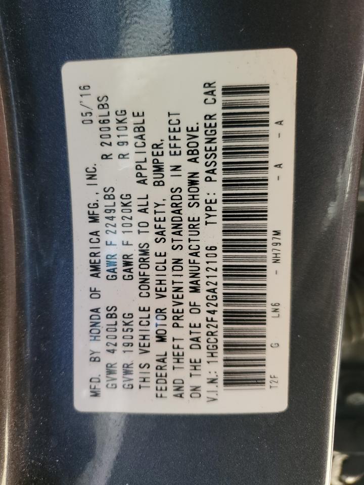 HONDA ACCORD 2.4 2016 г.в., (1HGCR2F42GA212106) из США