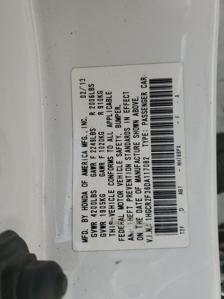 Цвет БелыйЦилиндры 4VIN 1HGCR2F36DA117082Состояние НеизвестноПовреждение Передняя или задняя