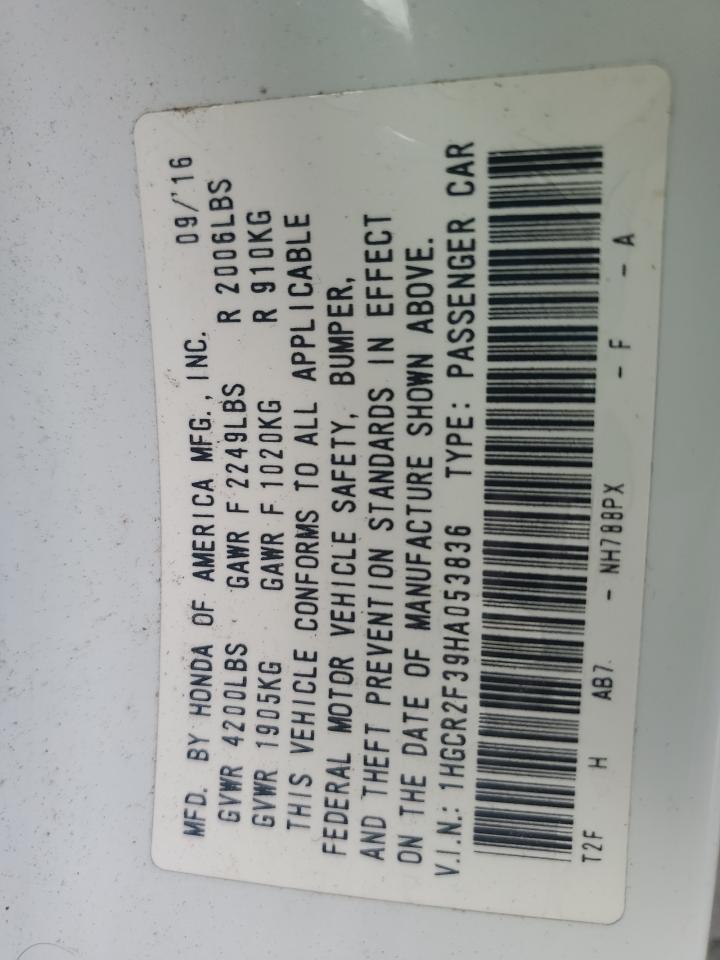 Цвет БелыйЦилиндры 4VIN 1HGCR2F39HA053836Состояние НеизвестноПовреждение Передняя или задняя