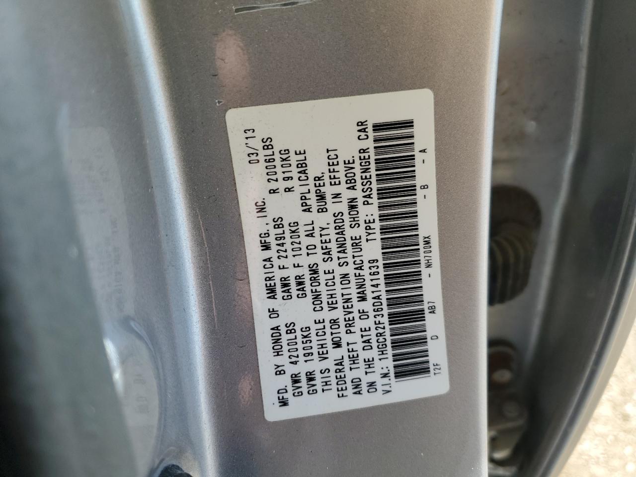 Цвет СеребряныйЦилиндры 4VIN 1HGCR2F36DA141639Состояние Заводится и едет (проверено)Повреждение По бокам