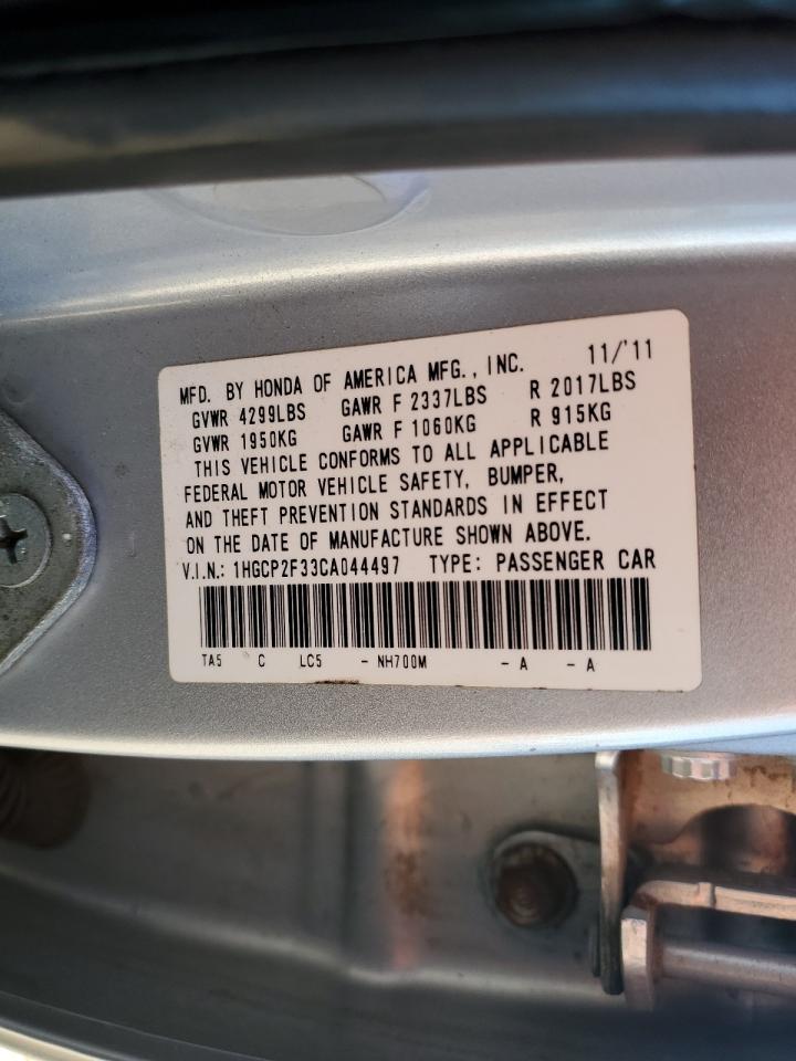Цвет СеребряныйЦилиндры 4VIN 1HGCP2F33CA044497Состояние НеизвестноПовреждение Передняя или задняя