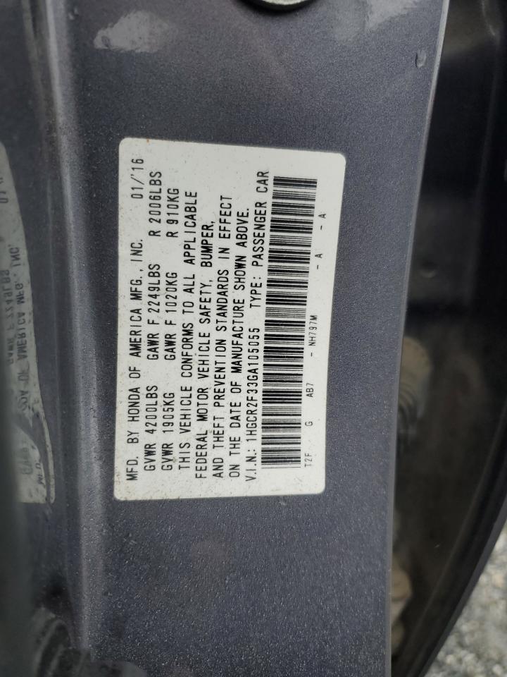 HONDA ACCORD 2.4 2016 г.в., (1HGCR2F33GA105055) из США