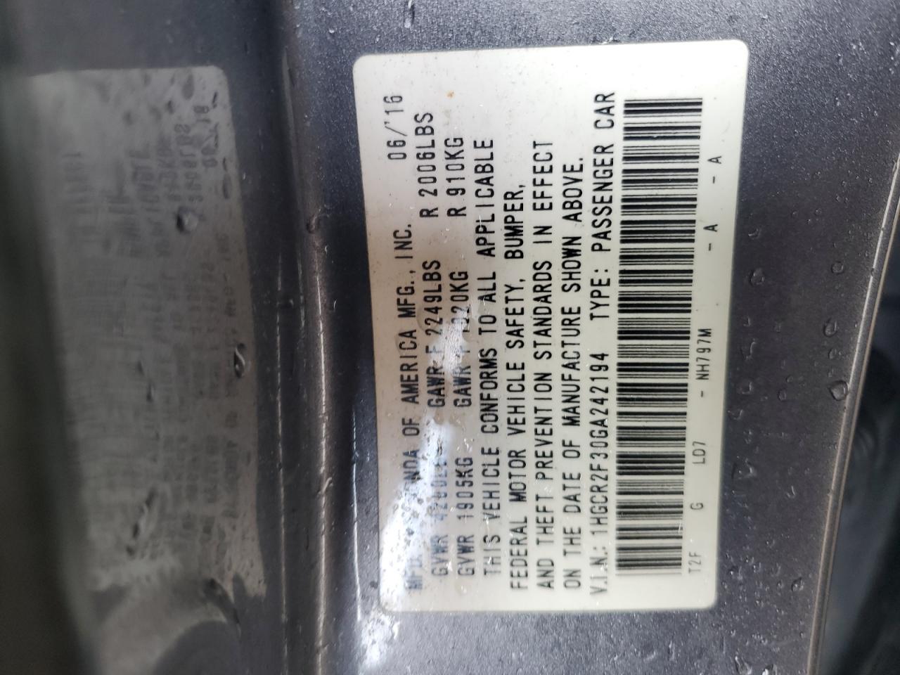 Цвет СерыйЦилиндры 4VIN 1HGCR2F30GA242194Состояние Заводится и едет (проверено)Повреждение Передняя или задняя