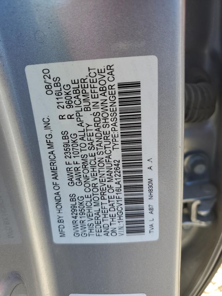 HONDA ACCORD 1.5 2020 г.в., (1HGCV1F16LA122642) из США