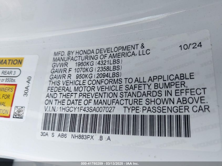 HONDA ACCORD 1.5 2025 г.в., Передний привод (1HGCY1F43SA007027) из США