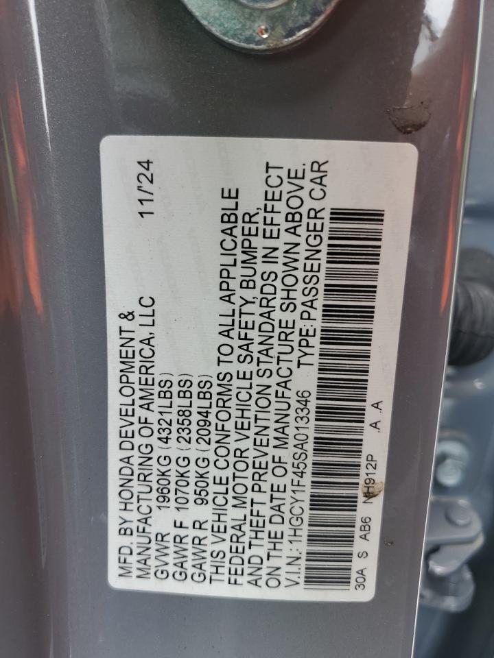 Цвет СерыйЦилиндры 4VIN 1HGCY1F45SA013346Состояние НеизвестноПовреждение ПожарДата аукциона 2025-11-03