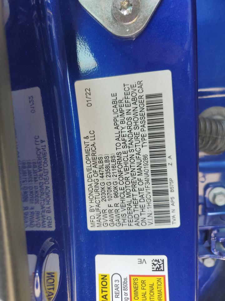 HONDA ACCORD 1.5 2022 г.в., (1HGCV1F34NA019286) из США