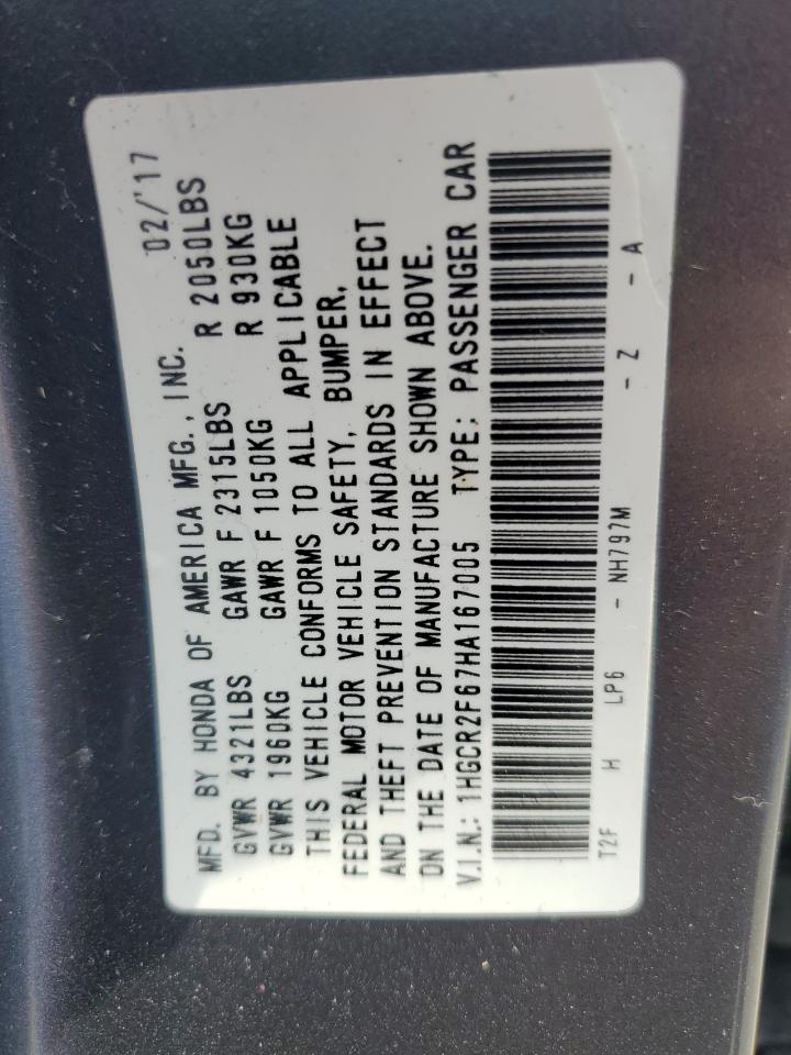 HONDA ACCORD 2.4 2017 г.в., (1HGCR2F67HA167005) из США