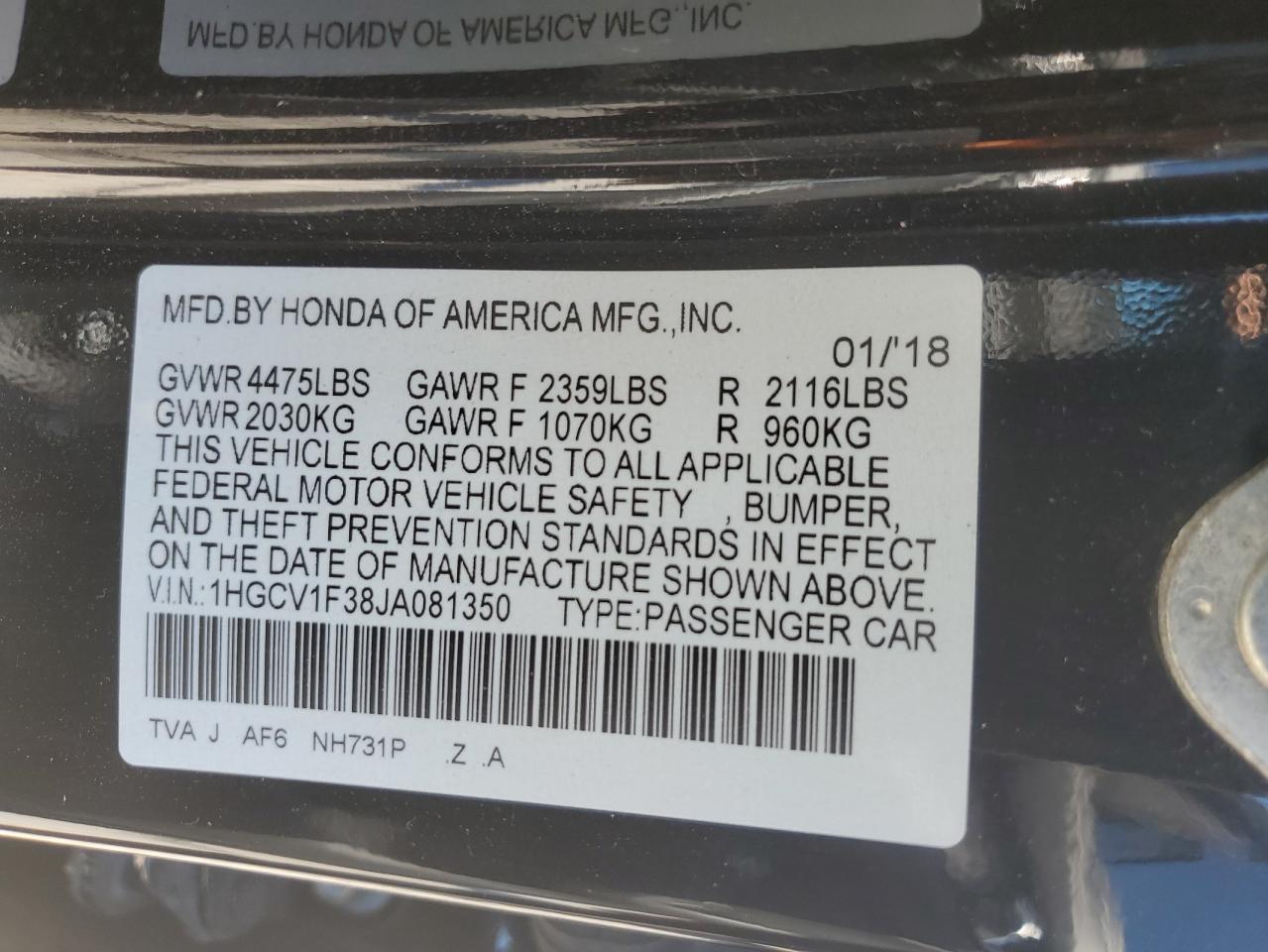 HONDA ACCORD 1.5 2018 г.в., (1HGCV1F38JA081350) из США