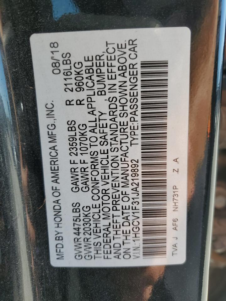 HONDA ACCORD 1.5 2018 г.в., (1HGCV1F31JA219892) из США