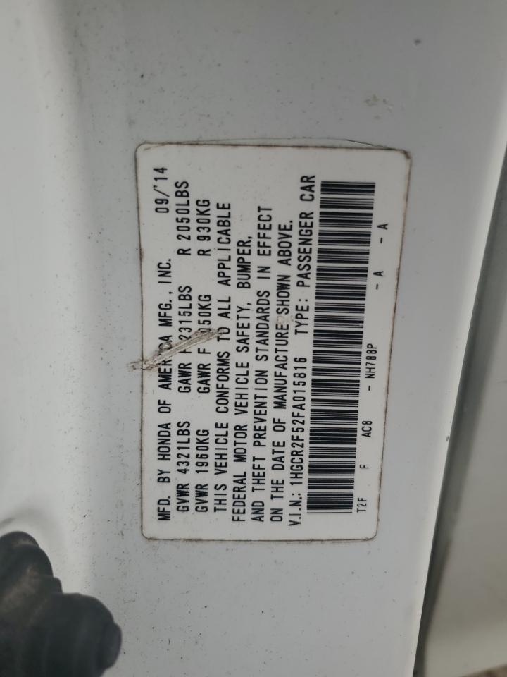 HONDA ACCORD 2.4 2015 г.в., (1HGCR2F52FA015816) из США