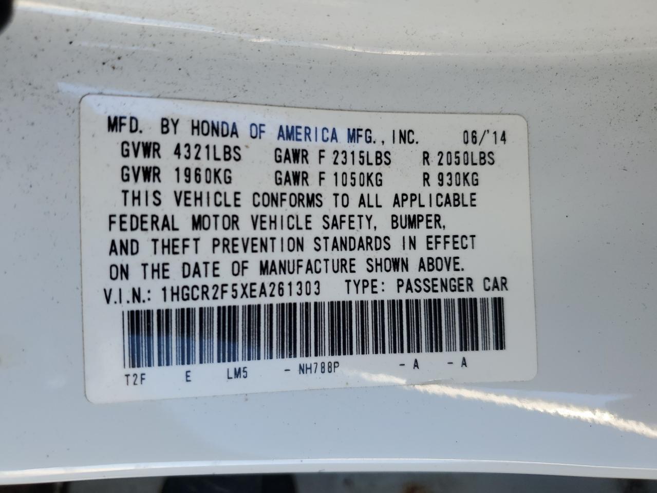 Цвет БелыйЦилиндры 4VIN 1HGCR2F5XEA261303Состояние Заводится и едет (проверено)Повреждение Передняя или задняя