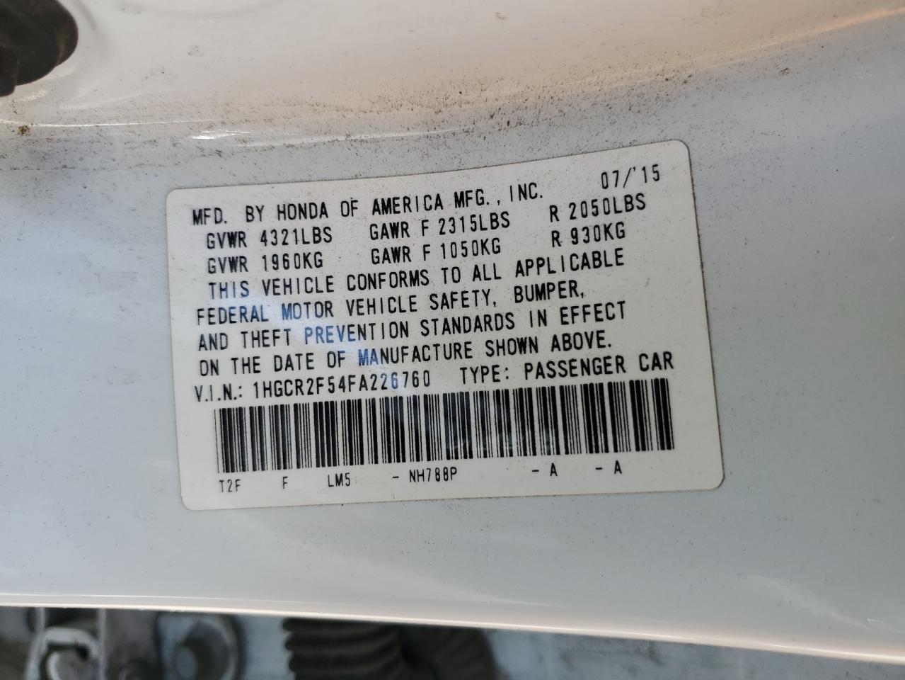 Цвет БелыйЦилиндры 4VIN 1HGCR2F54FA226760Состояние ЗаводитсяПовреждение Передняя или задняя