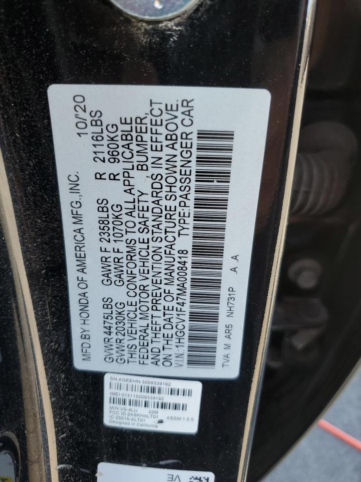 HONDA ACCORD 1.5 2021 г.в., (1HGCV1F47MA008418) из США