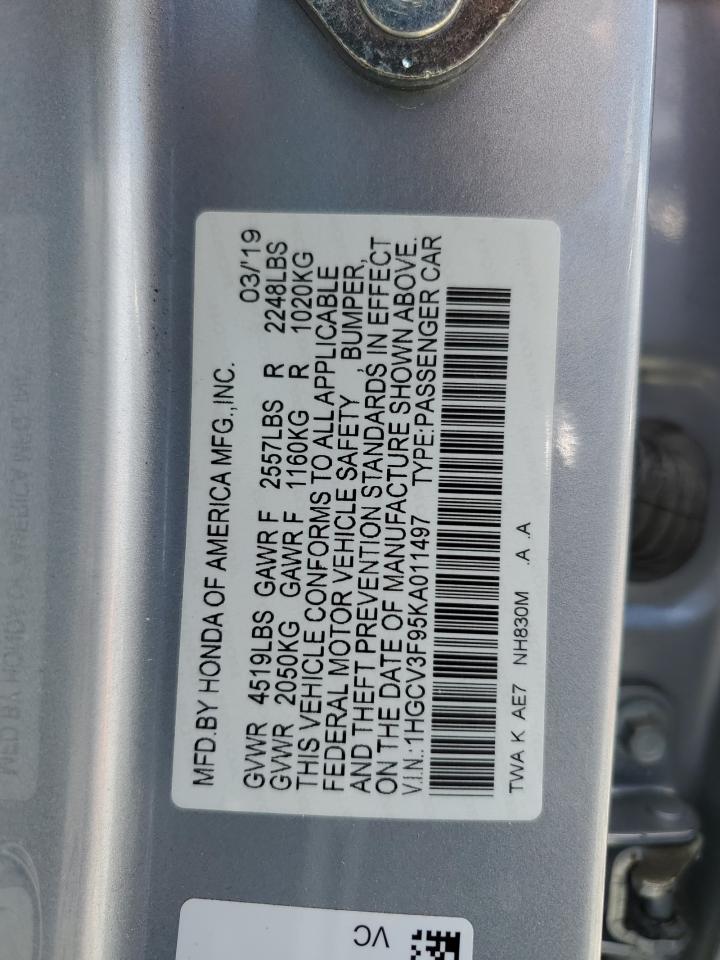 HONDA ACCORD 2.0 2019 г.в., (1HGCV3F95KA011497) из США