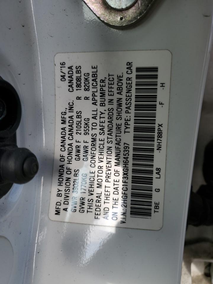 HONDA CIVIC 1.5 2016 г.в., (2HGFC1F3XGH645397) из США