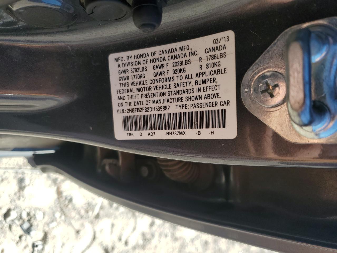 HONDA CIVIC 1.8 2013 г.в., (2HGFB2F82DH539882) из США