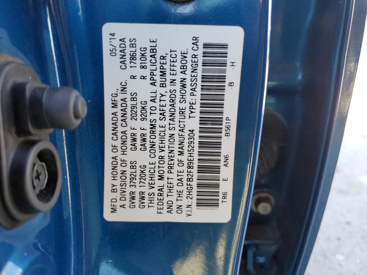 HONDA CIVIC 1.8 2014 г.в., (2HGFB2F89EH529304) из США