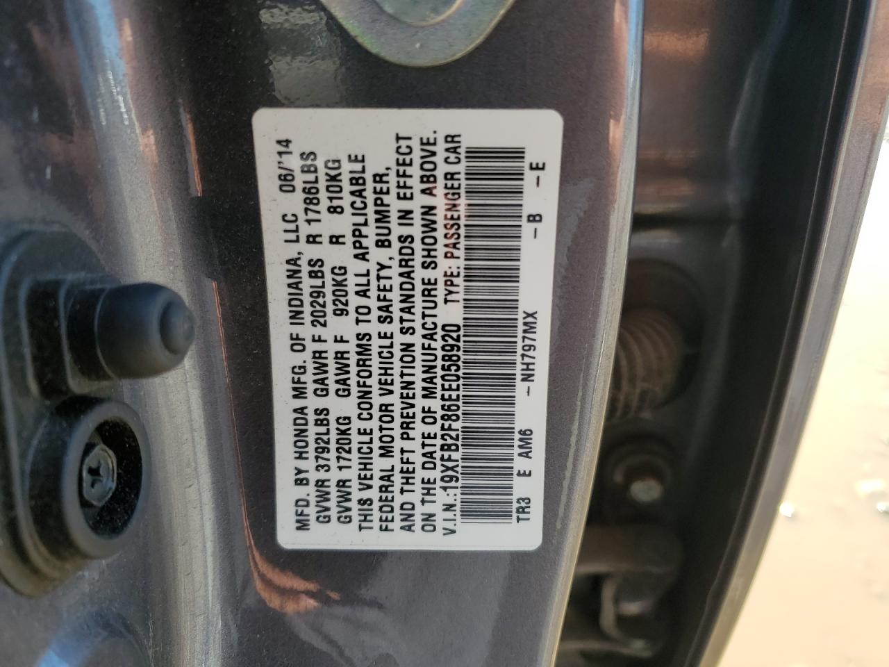 Цвет СерыйЦилиндры 4VIN 19XFB2F86EE058920Состояние Заводится и едет (проверено)Повреждение По бокам