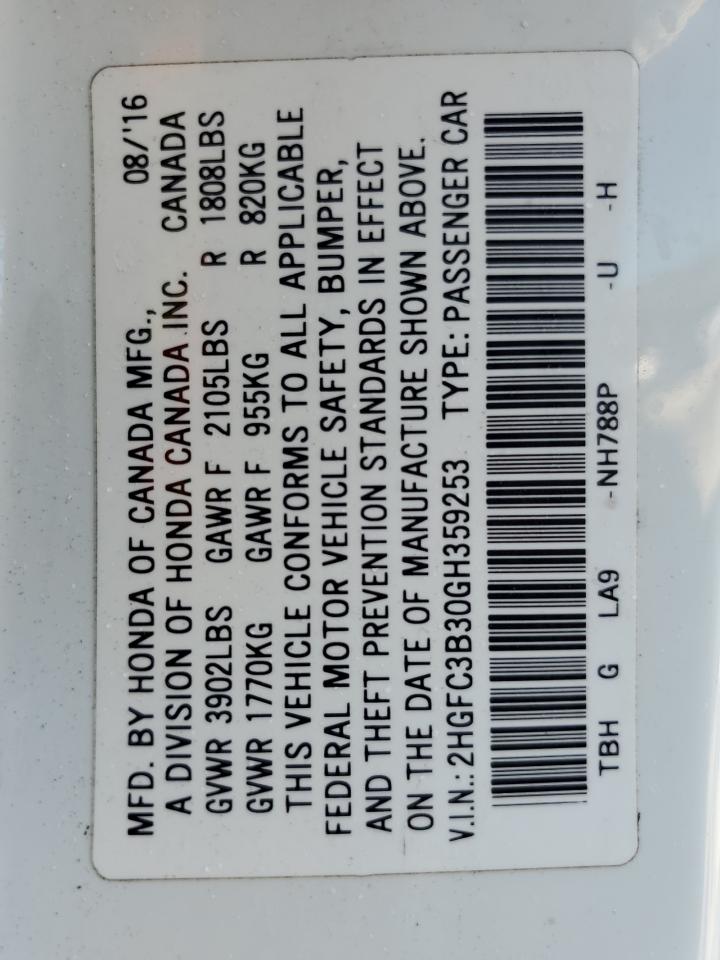 HONDA CIVIC 1.5 2016 г.в., (2HGFC3B30GH359253) из США