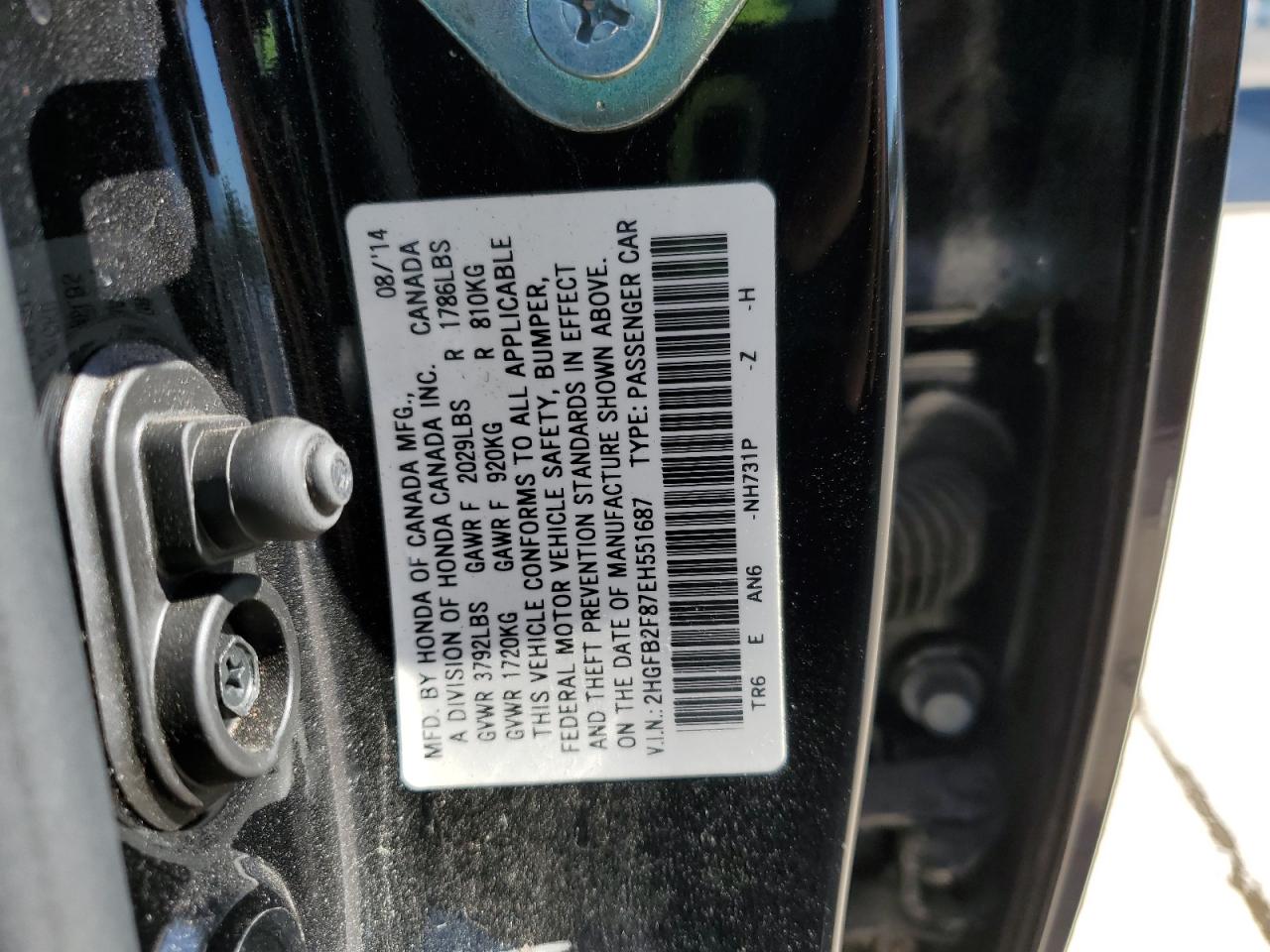 HONDA CIVIC 1.8 2014 г.в., (2HGFB2F87EH551687) из США