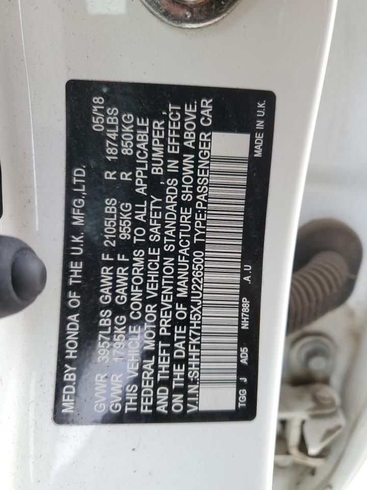 HONDA CIVIC 1.5 2018 г.в., (SHHFK7H5XJU226500) из США