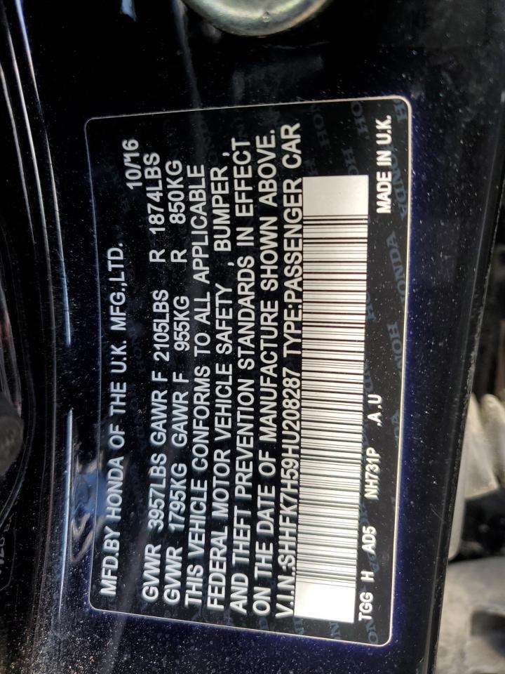 HONDA CIVIC 1.5 2017 г.в., (SHHFK7H59HU208287) из США